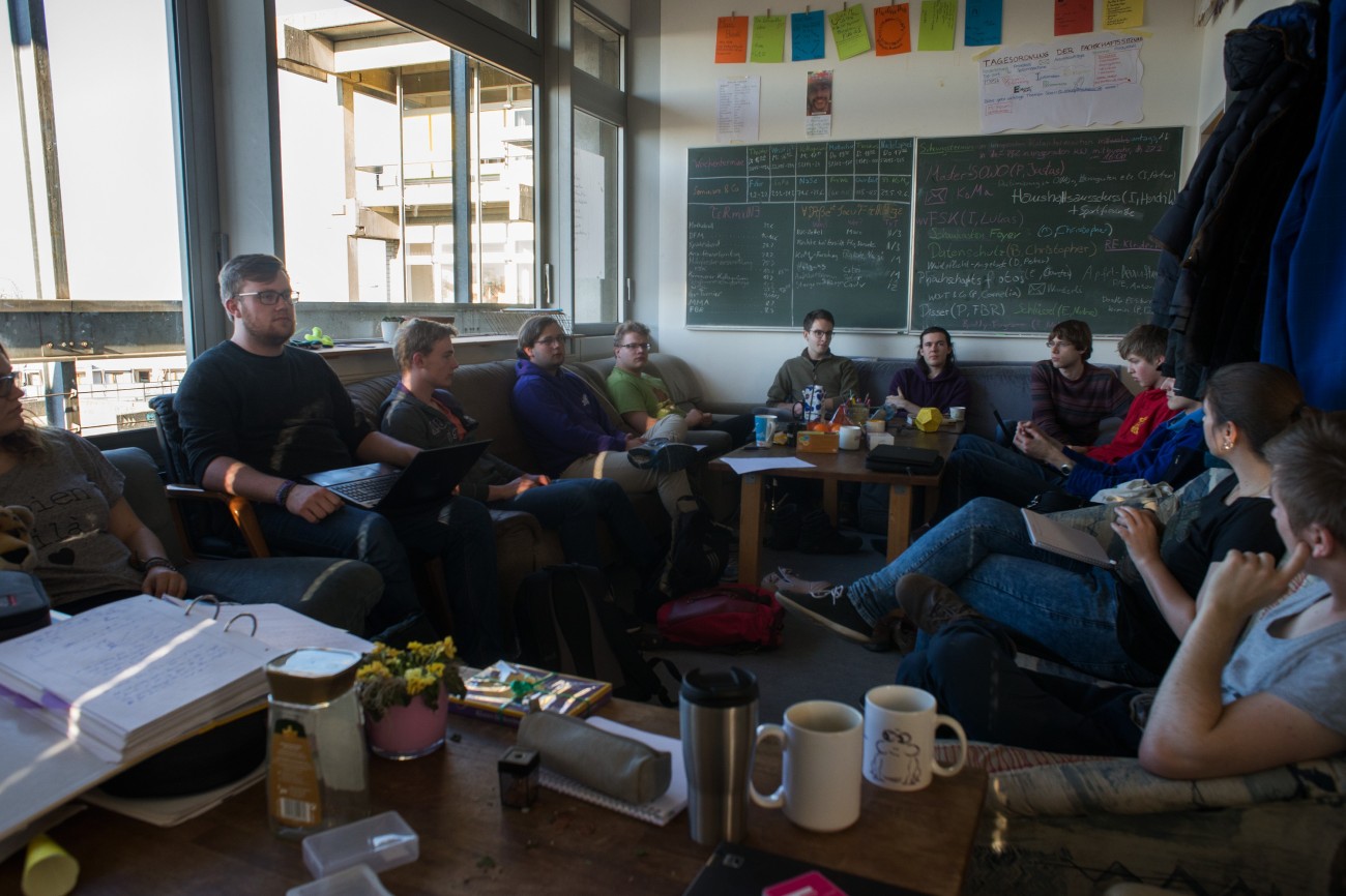 There are a lot of regularly recurring topics at the student council meeting, such as the organisation of the “Hochschul- und Berufsorientierungstage” (hobit), the orientation week (OWO), the “Wahlpflichtorientierungstage” (WOrT), the preparation of the various department council and committee meetings, the implementation of campaigns for student criticism of courses and much more. For the universtity elections, we draw up a list of candidates for the student representatives on the Faculty Council.