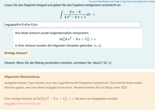 Die Aufgabendatenbank wurde im Wintersemester 2020/21 und Sommersemester 2021 erfolgreich in den Lehrveranstaltungen Mathematik I für Maschinenbau und Mathematik II für Maschinenbau eingesetzt. Für das Wintersemester 2021/22 sowie Sommersemester 2022 erfolgte eine Einbettung der Aufgabendatenbank in der Lehrveranstaltung Mathematik I und II für Bau.